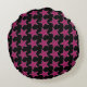 Hot Pink and Black Striped Stars Round Pillow
