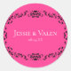 Hot Pink and Black Swirl Gothic Wedding Classic Round Sticker