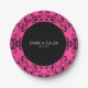 Hot Pink and Black Swirl Gothic Wedding Paper Plate