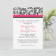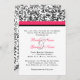 This classy invitation features black floral print design patterns and a touch of hot pink with a bar that runs across the top on the front. This beautiful and elegant wedding invitation is great for weddings with pink, white, and black colors. Look for matching RSVP in my shop!