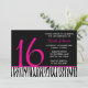 Hot Pink and Black Zebra Sweet 16 Number Birthday Invitation