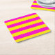 Hot Pink And Canary Yellow Stripes Square Paper Coaster