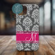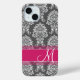 Hot Pink and Charcoal Damask Pattern with Monogram Case-Mate iPhone Case