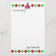 Stationery for teachers featuring the logo of The Pink Schoolhouse at top centre with a hot pink and bright green argyle design on each side. Top text reads "From the desk of......." Hot pink and green argyle on bottom with text that reads ".......Your Name Here" All text may be personalised. Font size, style, position, or colour may be changed using the design tool