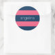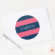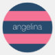 Hot Pink and Navy Modern Rugby Stripes with Name Classic Round Sticker