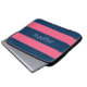 Hot Pink and Navy Modern Rugby Stripes with Name Laptop Sleeve