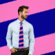 A unique hot pink and navy striped tie with thick stripes. A great diagonal striped tie for when you are feeling adventurous and when you want to stand out from the crowd.