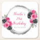 Beautiful birthday party coaster with a hot pink, black and silver faux glitter frame with floral flower arrangements. Perfect for a birthday party. The words can be changed to suit your own details or requirements