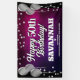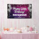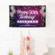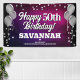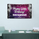 Fun banner sign for indoors or out, featuring festive silver metallic balloons on both sides of the design with sparkly, silver metallic confetti on a rich textured hot pink & purple coloured background for your personalised birthday banner. This product doubles as a wonderful milestone birthday keepsake.