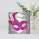 Hot Pink and Silver Mask Masquerade Party Invitation
