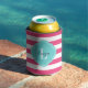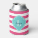 Hot Pink and Turquoise Preppy Stripes Monogram Can Cooler