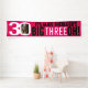 Bright hot pink and white 30th birthday add your own photo banner. Bright graphic hot pink, white, and black simple text big three oh! graphic style banner customise with your own details and a photo of your birthday girl in the number 0. Unique design by Sarah Trett for www.mylittleeden.com