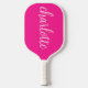 Hot pink and white modern girly calligraphy name on a pickleball paddle.