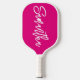 Hot Pink and White Modern Brush Script Pickleball Paddle