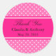 Hot Pink and White Polka Dot Wedding Thank You Classic Round Sticker