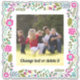 Hot pink, aqua and green floral border photo Sticker. A lovely design that includes a beautiful floral frame with a family photo. The frame is made of flowers in hot pink and aqua blue with olive green leaves. Your photo is placed in the centre. You can personalise it and change the text. Photography © Storytree Studios, Stanford, CA