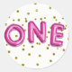 Hot Pink Balloons Gold Dots ONE 1st Birthday Party Classic Round Sticker