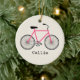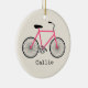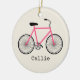 An ornament featuring an illustration of a hot pink bicycle. Personalise with your name under bike.