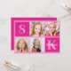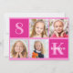 Cute 4 photo hot pink birthday party invitation for a little girl. Celebrate your child's birthday with 4 adorable photographs of them on this add your own photograph invite with pretty pink squares. Add their name and age.
