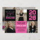 Hot Pink & Black Modern Graduation Invitation - 4 Photo (3 Front, 1 Back)