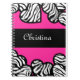 Hot pink black and white zebra pattern heart name spiral notebook