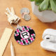 Monogram Keychain with Hot Pink & Black Argyle Design