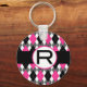 Hot Pink & Black Argyle Monogram Keychain "R"