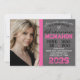 Hot Pink & Black Modern Chalkboard Graduation Photo Invitation.