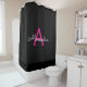 Black and Hot Pink Monogram Name Bathroom Shower Curtain. This makes the perfect sweet 16 birthday, wedding, bridal shower, anniversary, baby shower or bachelorette party gift for someone that loves glam luxury and chic styles.