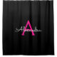 Hot Pink Black Girly Script Monogram Name Modern Shower Curtain