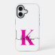 Hot Pink Black Initial Name Monogrammed iPhone 16 Case
