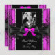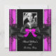 Hot Pink Black Lace Photo Birthday Party Invitation