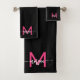 Hot Pink Black Modern Script Girly Monogram Name Bath Towel Set