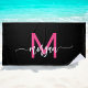 Hot Pink Black Modern Script Girly Monogram Name Beach Towel
