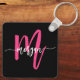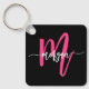 Hot Pink Black Modern Script Girly Monogram Name Key Ring
