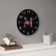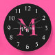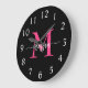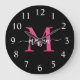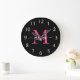 Hot Pink Black Modern Script Girly Monogram Name Large Clock