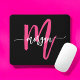 Hot Pink Black Modern Script Girly Monogram Name Mouse Pad