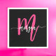 Hot Pink Black Modern Script Girly Monogram Name Napkin