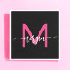 Hot Pink Black Modern Script Girly Monogram Name Napkin
