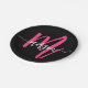 Hot Pink Black Modern Script Girly Monogram Name Paper Plate