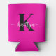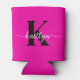This simple, elegant hot pink can cooler with your first name in a trendy script font in white and your first initial in a modern cap font in black is perfect for you. It's stylish and trendy and yet very classic. Get a bunch for when you're entertaining. Guests will be able to keep their drinks nice and cold.