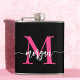 Hot Pink Black Monogram Girl's Bachelorette Party Hip Flask