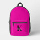 This simple, elegant hot pink backpack with your first name in a trendy script font in white and your first initial in a modern cap font in black is perfect for you. It's stylish and trendy and yet very classic. It will be fabulous for school, the gym, outings, hikes, shopping, biking, etc.