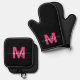 Personalised Custom Create Your Own Modern Black and Hot Pink Initial Name Monogram Oven Mitt and Pot Holder Set.