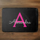Hot Pink Black Script Girly Monogram Name Bath Mat