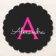 Hot Pink Black Script Girly Monogram Name Paper Coaster