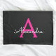 Hot Pink Black Script Girly Monogram Name Pillowcase