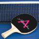 Hot Pink Black Script Girly Monogram Name Ping Pong Paddle