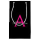 Hot Pink Black Script Girly Monogram Name Small Gift Bag