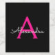 Hot Pink Black Script Girly Monogram Name Wine Label
